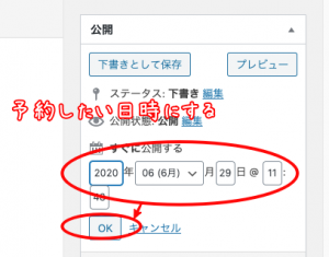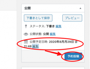 予約投稿をクリック。